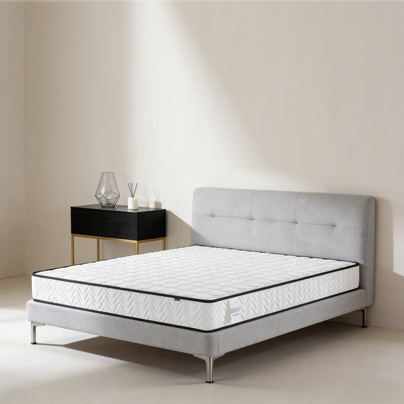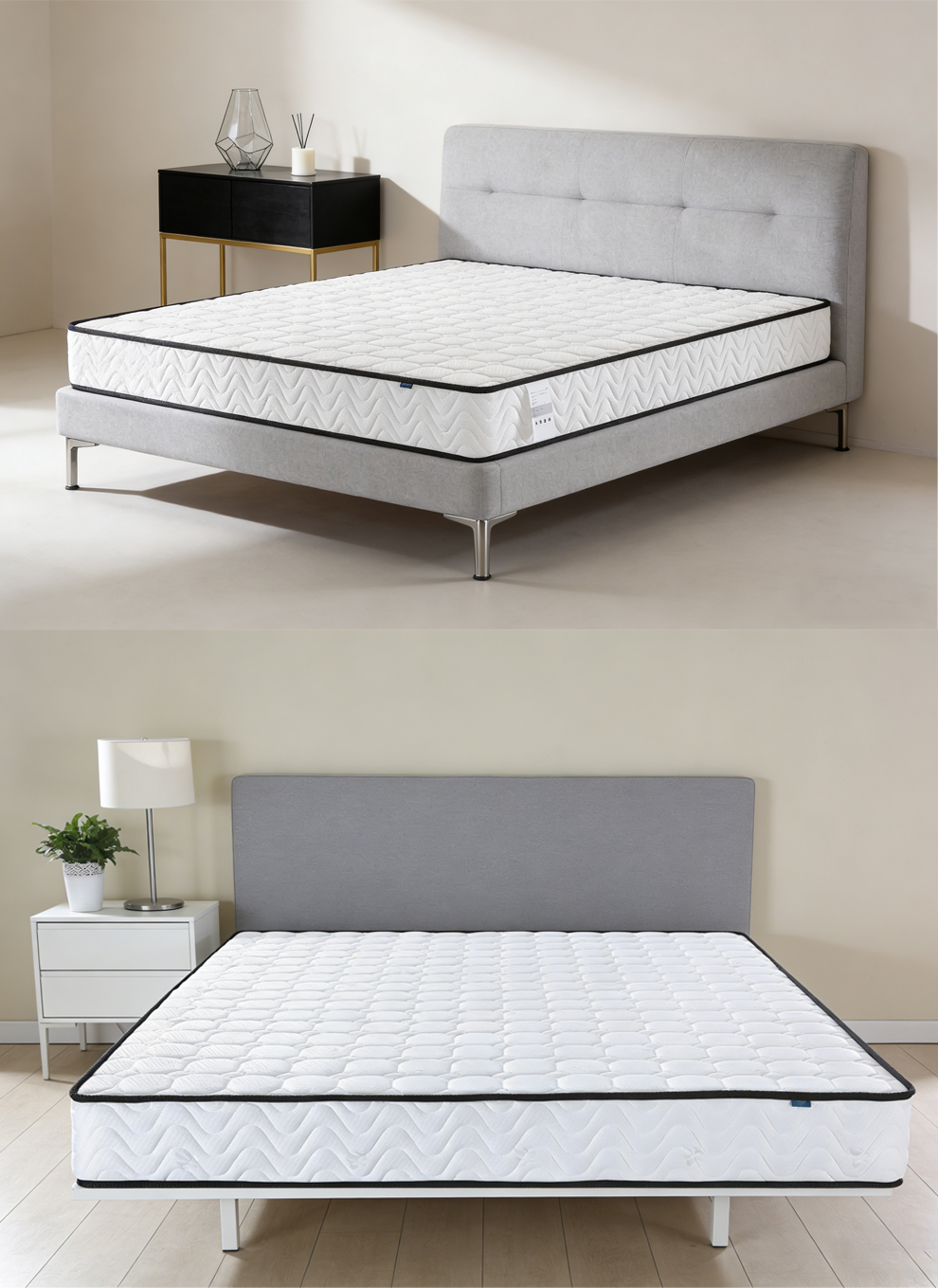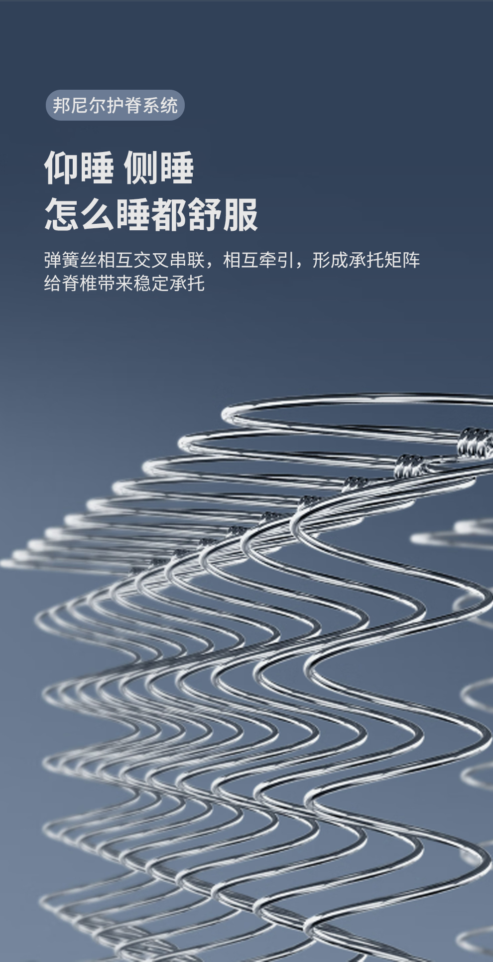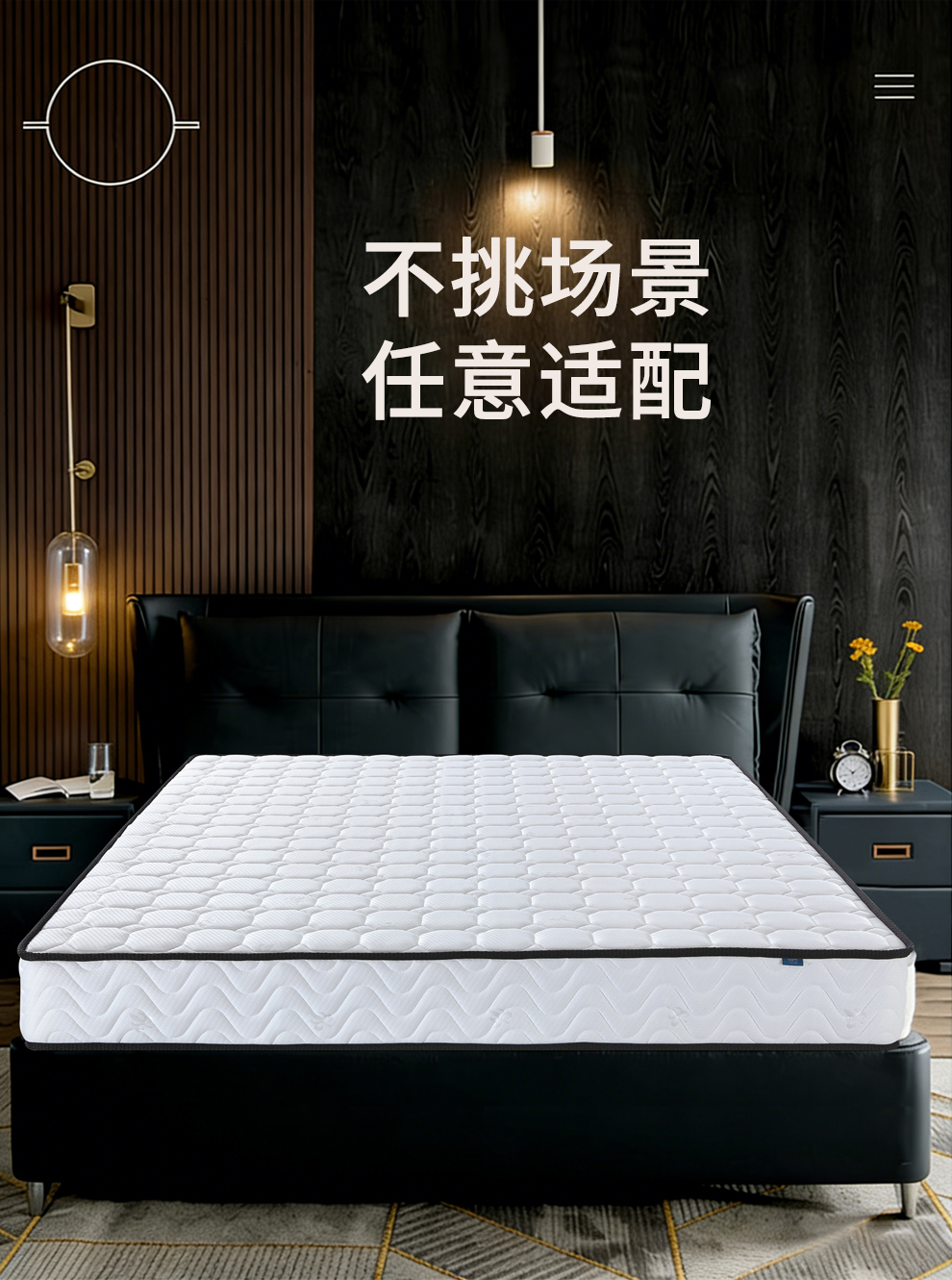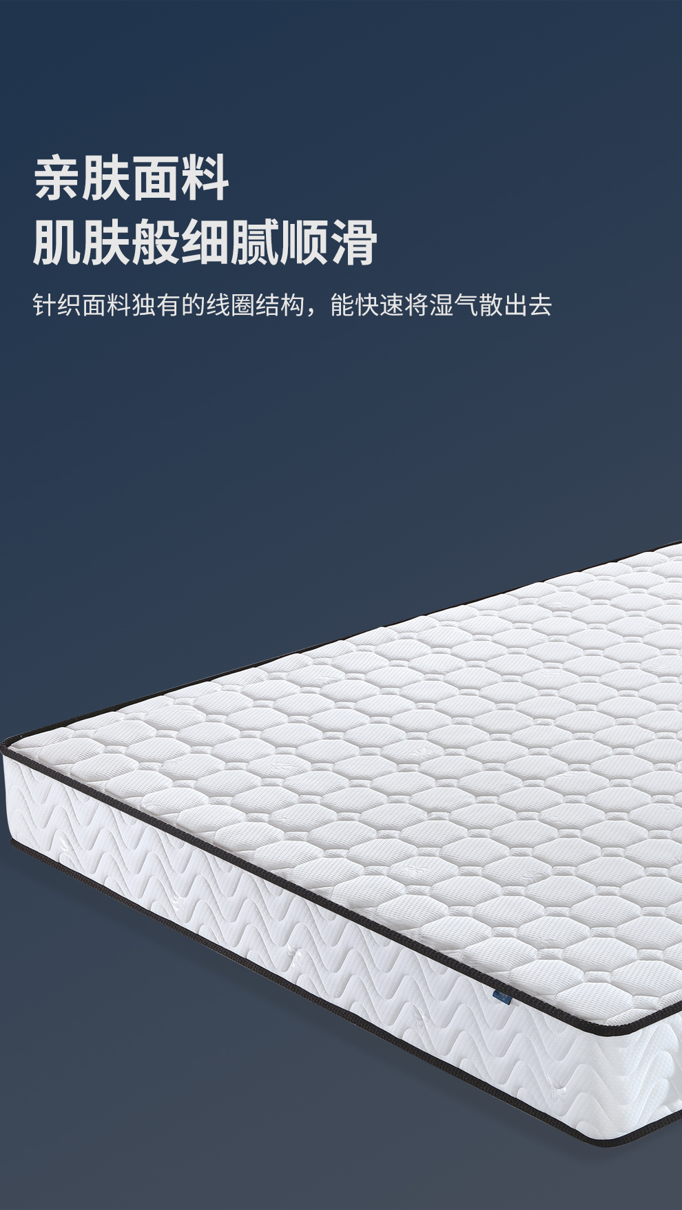 面料:高克重针织布 绗缝层:舒适海绵 支撑层:环保棕+拉丝网弹簧 侧面:针织面料复合多孔透气海绵 底面:3D网布+海棉 *不可改色改尺