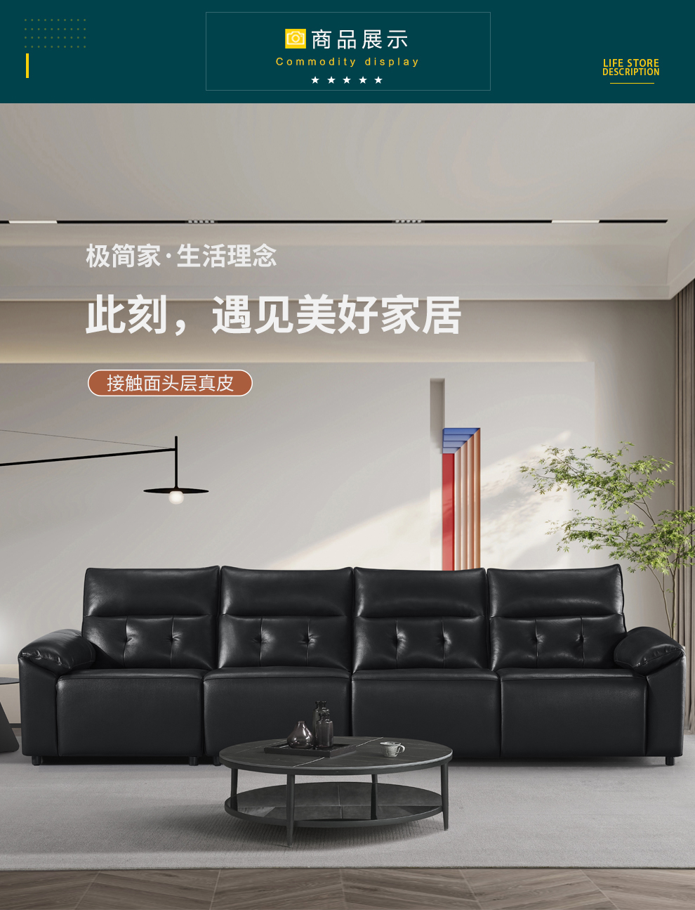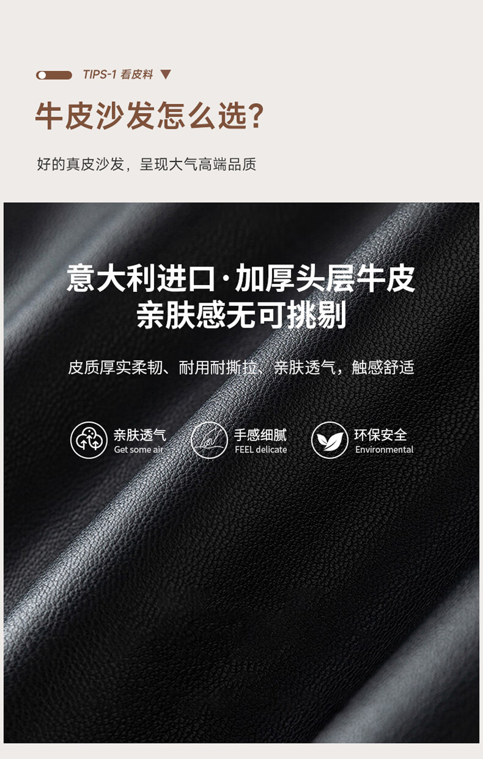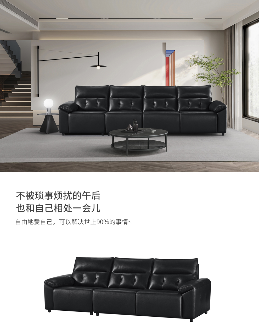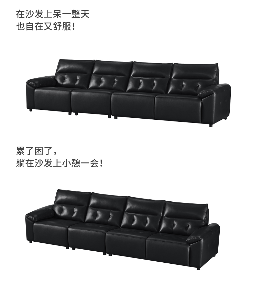 接触面头层真皮+高密度海绵+实木+5cm高枪黑五金脚 *30公分减尺不减钱,加尺寸100元/10公分,V1系列真皮免费改色。